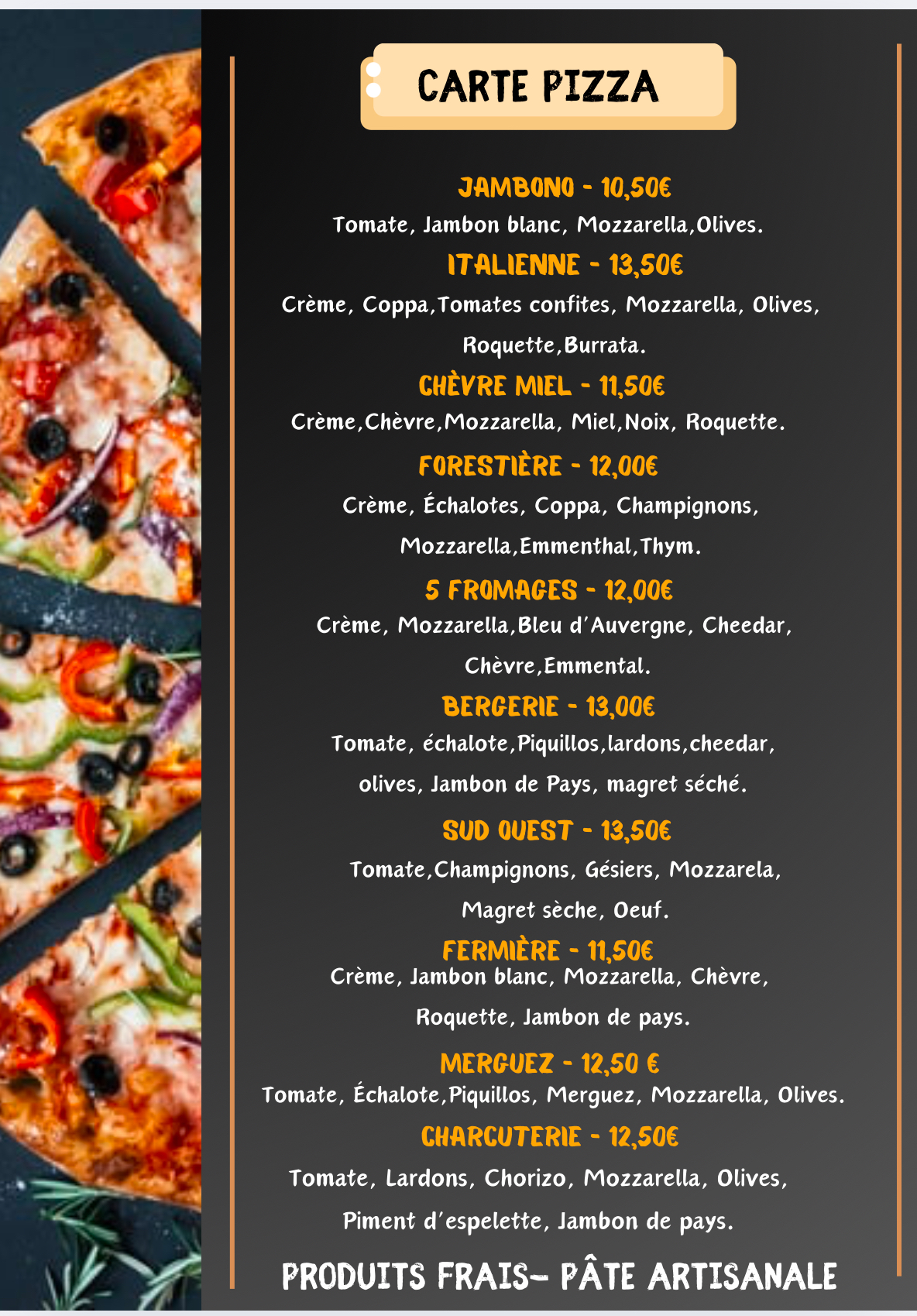 En attendant la fin de ce projet je vous propose une petite carte de pizzas à emporter, élaborés avec de produits frais et plein d’amour !